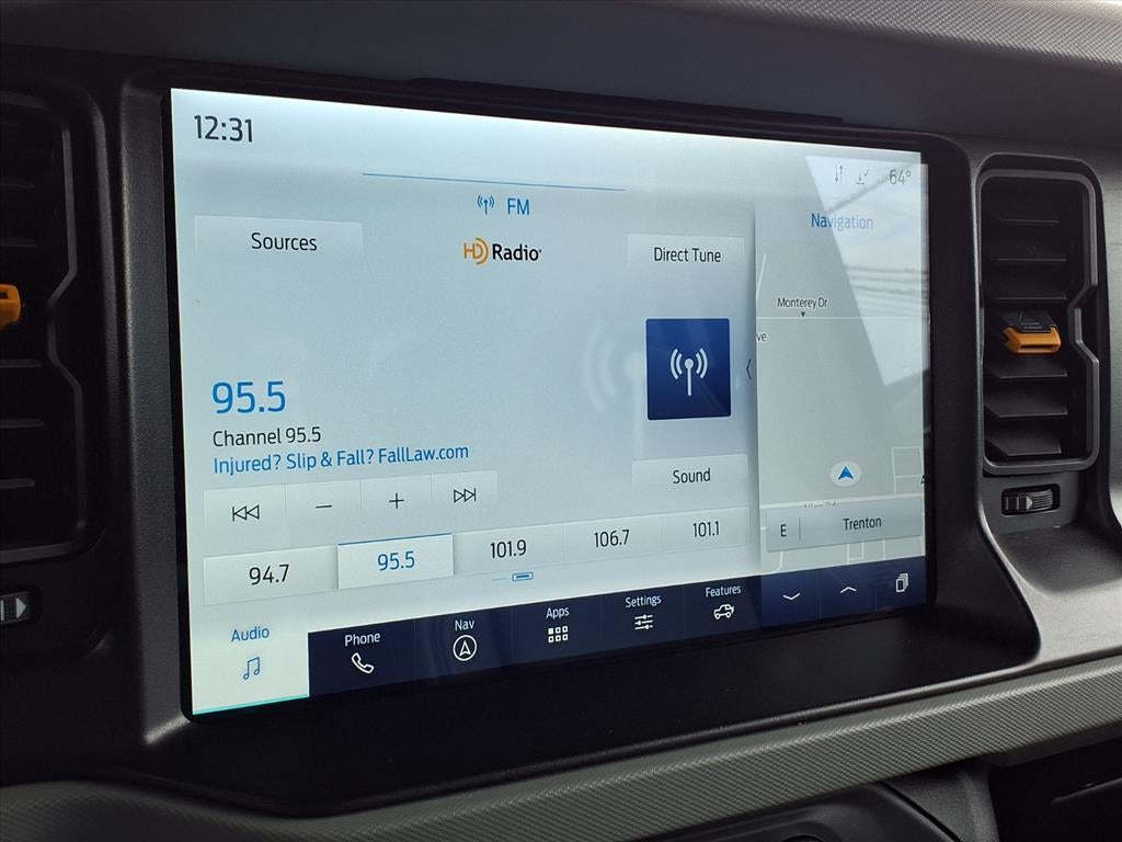 The installed navigation system will keep you on the right path. This Ford Bronco has auto-adjust speed for safe following. This unit warns of approaching vehicles with Cross-Traffic Alert. The Ford Bronco offers Apple CarPlay for seamless connectivity. See what's behind you with the back up camera on this unit. The state of the art park assist system will guide you easily into any spot. Never get into a cold vehicle again with the remote start feature on this 2022 Ford Bronco Advanced. This Ford Bronco is equipped with the latest generation of XM/Sirius Radio. Enjoy the heated seats in this 1/2 ton suv you will never buy a vehicle without them. Everyone loves the comfort of having a warm seat on those cold winter days. Keep your hands warm all winter with a heated steering wheel in this model . An off-road package is equipped on this vehicle. This vehicle offers Android Auto for seamless smartphone integration.