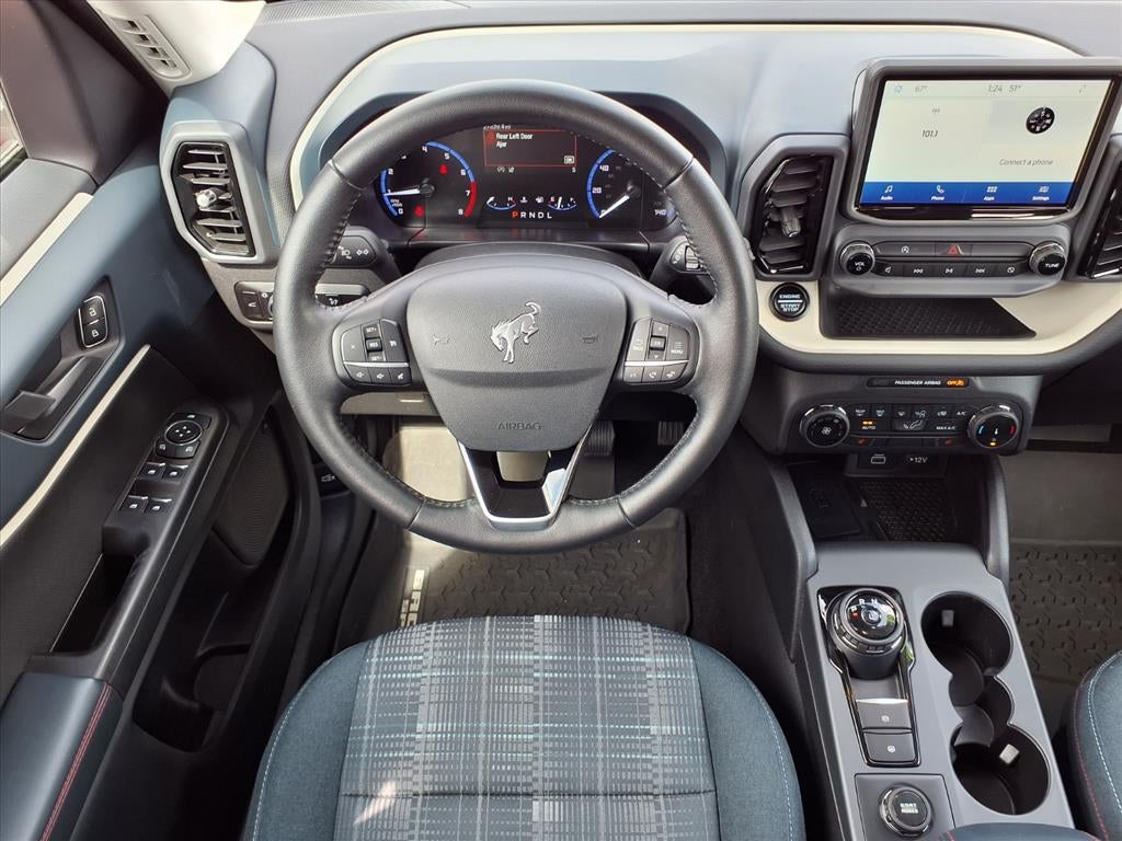 This vehicle features a hands-free Bluetooth® phone system. This vehicle comes equipped with Android Auto for seamless smartphone integration on the road. The Ford Bronco Sport offers Automatic Climate Control for personalized comfort. The state of the art park assist system will guide you easily into any spot. It offers Apple CarPlay for seamless connectivity. Good News! This certified CARFAX 1-owner vehicle has only had one owner before you. See what's behind you with the back up camera on this mid-size suv. The vehicle's Cross-Traffic Alert: Safeguarding you from unexpected traffic when reversing. Start this Ford Bronco Sport from inside with remote start. This Ford Bronco Sport has a 3 Cyl, 1.5L high output engine. This Ford Bronco Sport gleams with a flashy red exterior. When you encounter slick or muddy roads, you can engage the four wheel drive on this Ford Bronco Sport and drive with confidence. Set the temperature exactly where you are most comfortable in the vehicle. The fan speed and temperature will automatically adjust to maintain your preferred zone climate.
